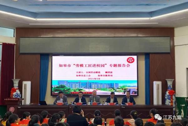 為深入學習貫徹習近平總書記在全國勞模大會上的重要講話精神,進一步弘揚勞模精神、勞動精神、工匠精神,幫助青少年學生樹立正確的世界觀、人生觀、價值觀,5月19日,全國勞動模范,江蘇九鼎集團黨委書記、董事長顧清波受如皋市總工會邀請,走進江安高級中學,和師生面對面,分享他的奮斗故事和工作感悟。