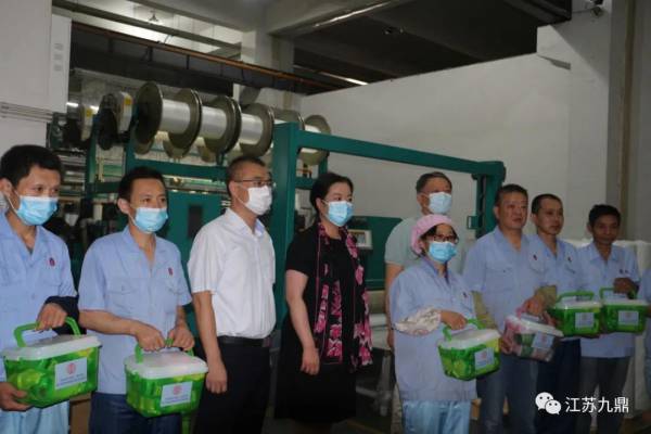 7月21日下午,如皋市委常委、組織部部長朱瑩瀅在市總工會許益飛主席、程來斌主任,集團董事長顧清波、工會主席姜永健的陪同下,深入九鼎車間,慰問辛勤工作的一線員工,為他們送去了夏季防暑物品。